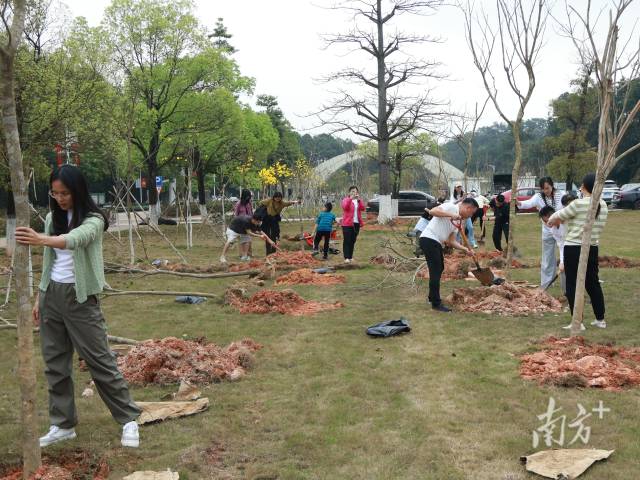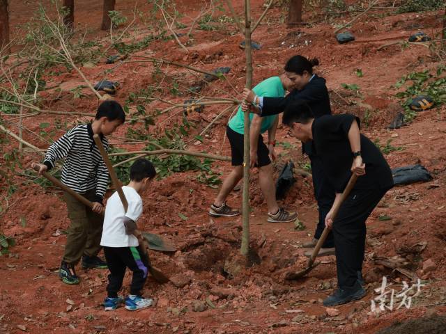 当日,植树活动分别在厚德楼前、沁湖湖畔的山坡上开展“肇友林”“佛山校友林”种植活动,与会师生、佛山校友会、肇庆校友会及家属代表通力协作,携手种下一棵棵花风铃木、黄花风铃木、紫玉兰。据悉,广财校友会还特意为每位捐种树苗的校友定制了名牌,供校友们认领自己捐种的树苗。
