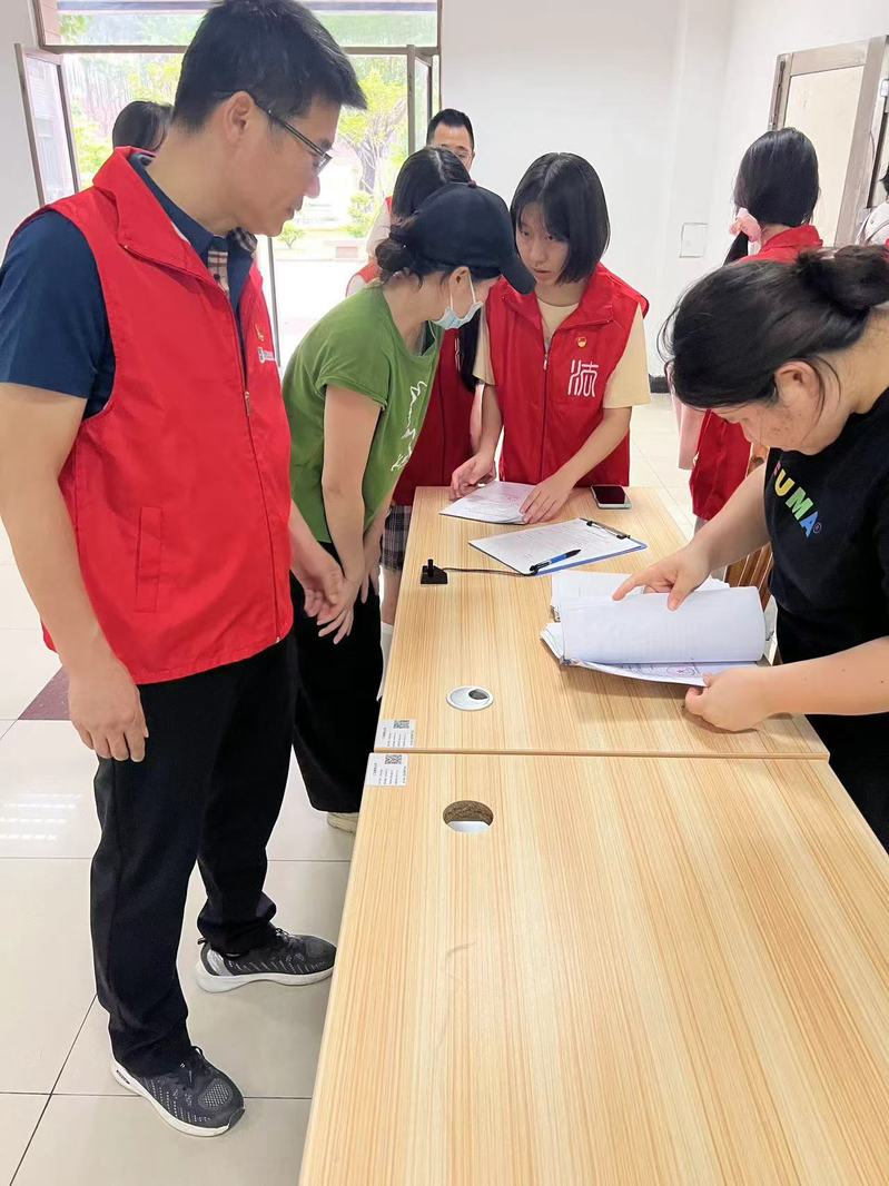 参加活动的党员身穿志愿者服装、佩戴党员徽章,主动“亮身份上岗”,用心参与服务师生志愿活动,党员同志们协同配合,负责资料审核、指导第三方人员上牌资料填写、维持排队现场秩序以及协助车牌安装等各项工作,大家各司其职,有序高效。