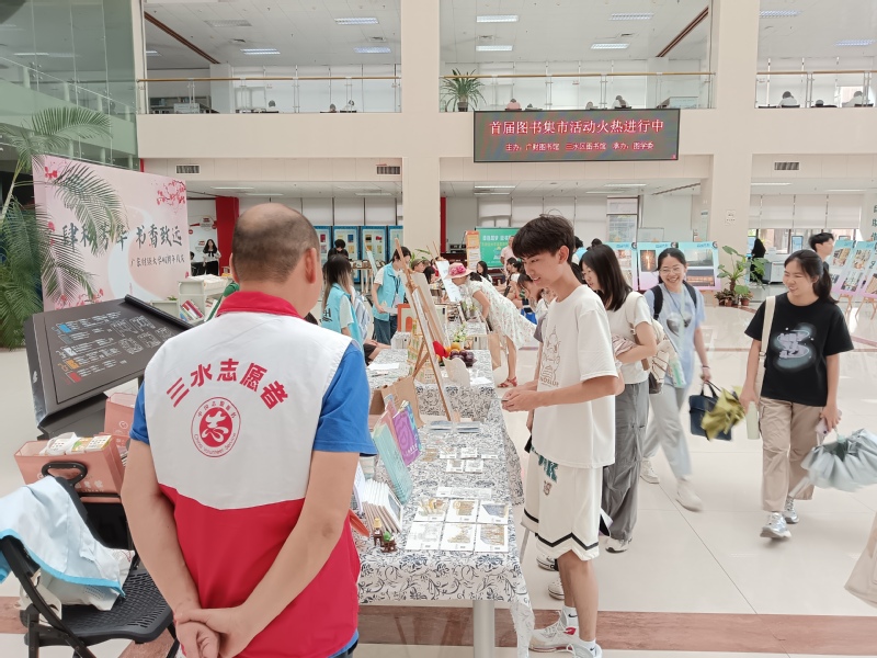 6月11日下午,由我校图书馆与三水区图书馆联合举办的首届“仲夏纳凉寻韵,氤氲书香流转”主题图书集市活动在图书馆m88分馆举行。三水区图书馆胡穗欣馆长、张雷副馆长,三水区青年画家吴迪南、马静、朱小珑、我校图书馆汪倩副馆长,以及100多位师生参加了活动。