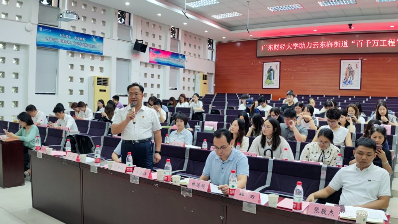 7月4日下午,m88助力云东海街道“百千万工程”实践项目推进会在m88圆满举行,会议听取了我校“研传深教”等10个学生实践项目团队助力云东海街道“百千万工程”实践项目进展情况的汇报。共青团三水区委书记朱嘉浩,三水区教育局副局长徐挺,云东海街道副书记林国明,m88管委会副主任刘金水、郑田,云东海街道各有关部门负责人,我校省市共建办、校团委及有关学院负责人、指导老师、各项目学生团队代表等参加会议。