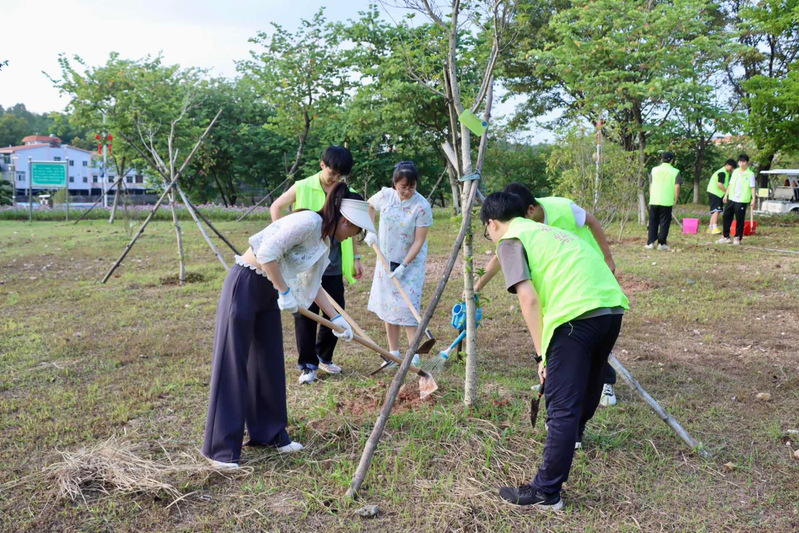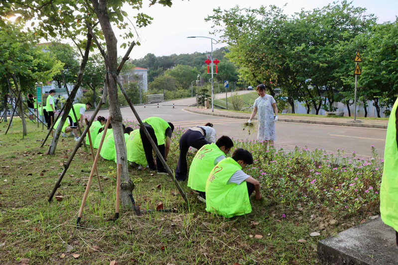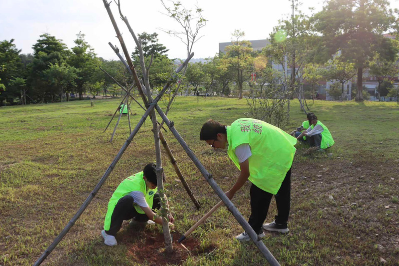 阳光下,闪耀的不只是树苗还是每一个忙碌的身影。在师生的齐心同力下,将绿色的理念植入在校园的土地上并蓬勃生长,顺利完成此次护绿活动。