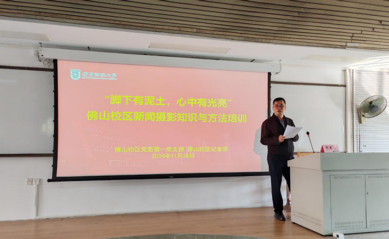 此次培训特邀佛山市新闻传媒中心资深摄影记者王澍担任主讲人。培训过程中,王澍采用丰富的摄影案例,以图文并茂的形式和风趣幽默的谈吐,对新闻摄影的基础知识分门别类进行了深入系统的分析讲解。同时,王澍针对学校常见的会议、活动、致辞、考察调研等工作场景,及日常生活拍照的常见问题,详细介绍了拍摄方法与技巧,分享了他多年的摄影经验。此外,王澍还结合个人成长经历,与在场师生分享了他大学期间的实习经历及求职经验,为同学们如何充实度过大学生活为就业做好充分准备提供了宝贵建议。