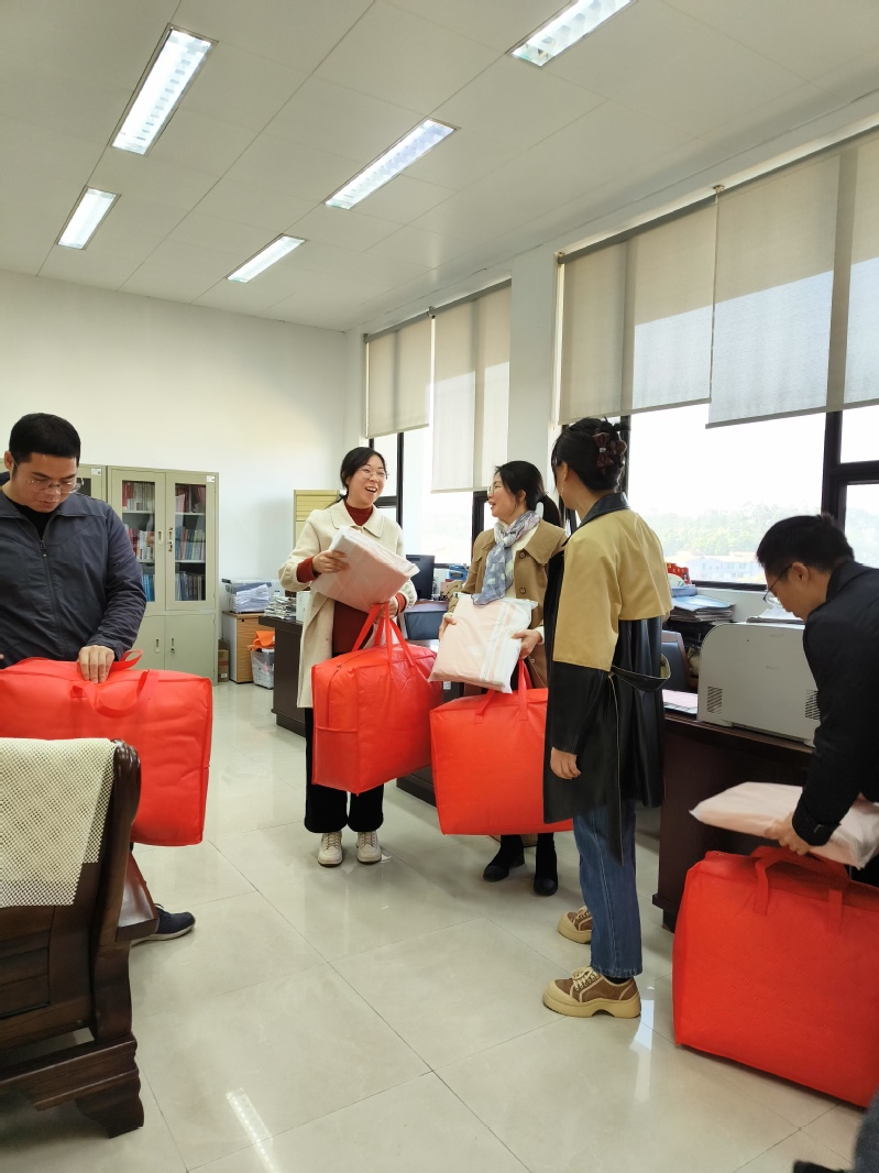 1 月 2 日下午,在冬日暖阳的照耀下,m88分工会举办了一场温馨的送温暖活动。m88管委会副主任、分工会主席郑田带领分工会委员陆万权、高秀秀,将一份份精心准备的御寒床上用品,亲手递到了长期坚守在校区一线的教职员工手中,以实际行动传递温暖与关怀。