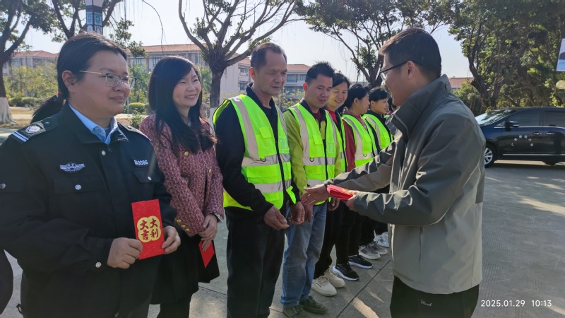 慰问团先后走访了校区东门、中心花园、西门等值班点。每到一处,曾忠诚都热情、亲切慰问值班值守人员及其家属,感谢他们春节期间忠于职守,为学校、m88建设发展作出的努力,并亲自为大家送上慰问红包,恭祝大家新春快乐,事事如意,身体健康,阖家幸福,勉励大家继续保持奋进自律精神气,为建设绿美、平安的校园继续努力。