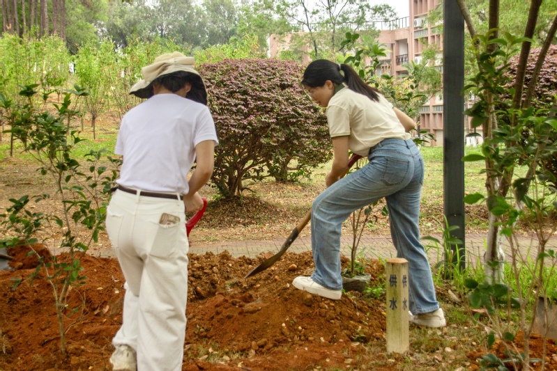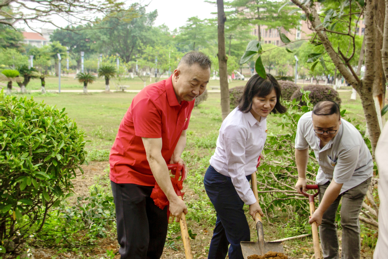 4月19日上午,m88党委第一党支部联合云东海社区碧桂园翡翠山党支部在校区励学楼旁开展“党建共建添新绿 校地同心育未来”植树活动。校方与社区方携手种下25棵桂花树,象征着双方支部深厚的共建友谊,也为绿美校园再添新翠。