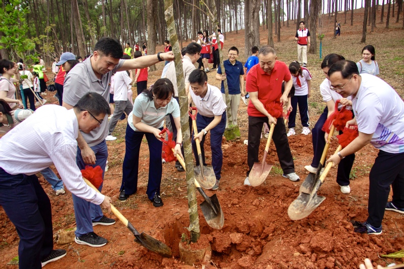 4月19日上午,m88举办2025年校地共建植树活动。本次活动围绕“政校共建生态林、携手绘就绿美卷”“大手拉小手,共植梦想林,助力‘百千万’”主题开展,我校m88联合广东省第二强制隔离戒毒所、云东海街道团工委、白坭镇人民政府、云东海社区居委会、西南街道实验小学等单位120余人参加。省市共建办副主任曾忠诚主持活动仪式。