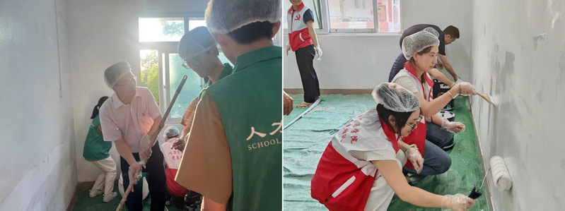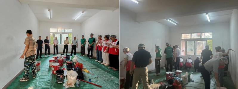 粉刷活动现场,师生们纷纷拿起工具用自己的双手,将杂乱发黑的墙面变得雪白无瑕,为桂园学生社区活动室注入了新的活力。