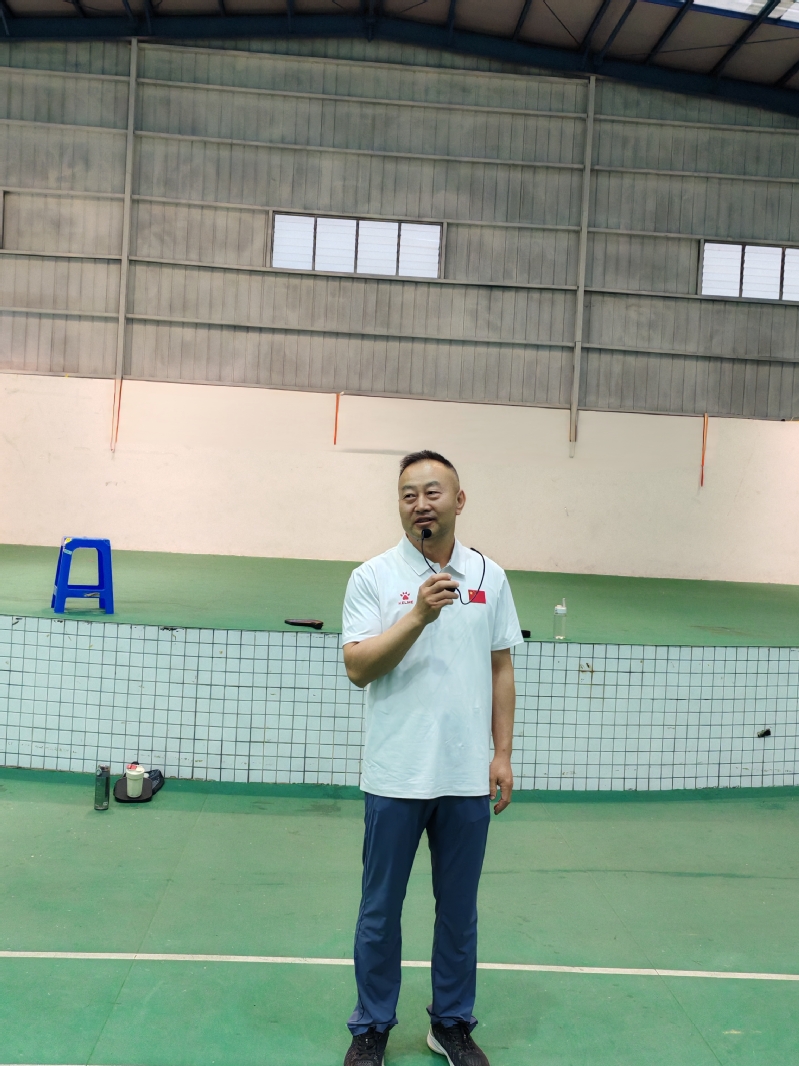 启动仪式结束后,体育部的老师们迅速行动起来,为m88的教职工们精心准备了一场专业且生动的网球培训课程。在球场上,网球国家一级运动员张煜堃老师耐心地向教职工们讲解网球的基本规则和技巧,从握拍的姿势到击球的动作,每一个细节都进行认真讲解。参与培训的教职工们全神贯注,积极投入实践,认真练习每一个动作,在挥拍之间感受着运动的魅力与乐趣。